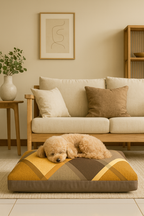 Each bed is wrapped in natural, toxin-free fabric, gentle on skin and safe for sensitive pups. It shapes softly to your dog’s body — then fluffs right back up like a cloud ☁️.